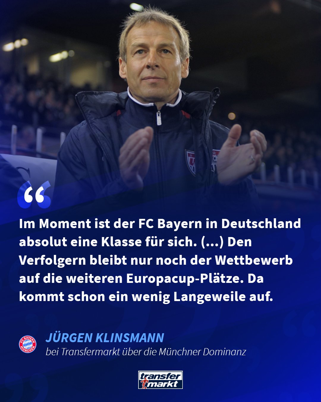 克林斯曼认为已经可以祝贺拜仁德甲夺冠了